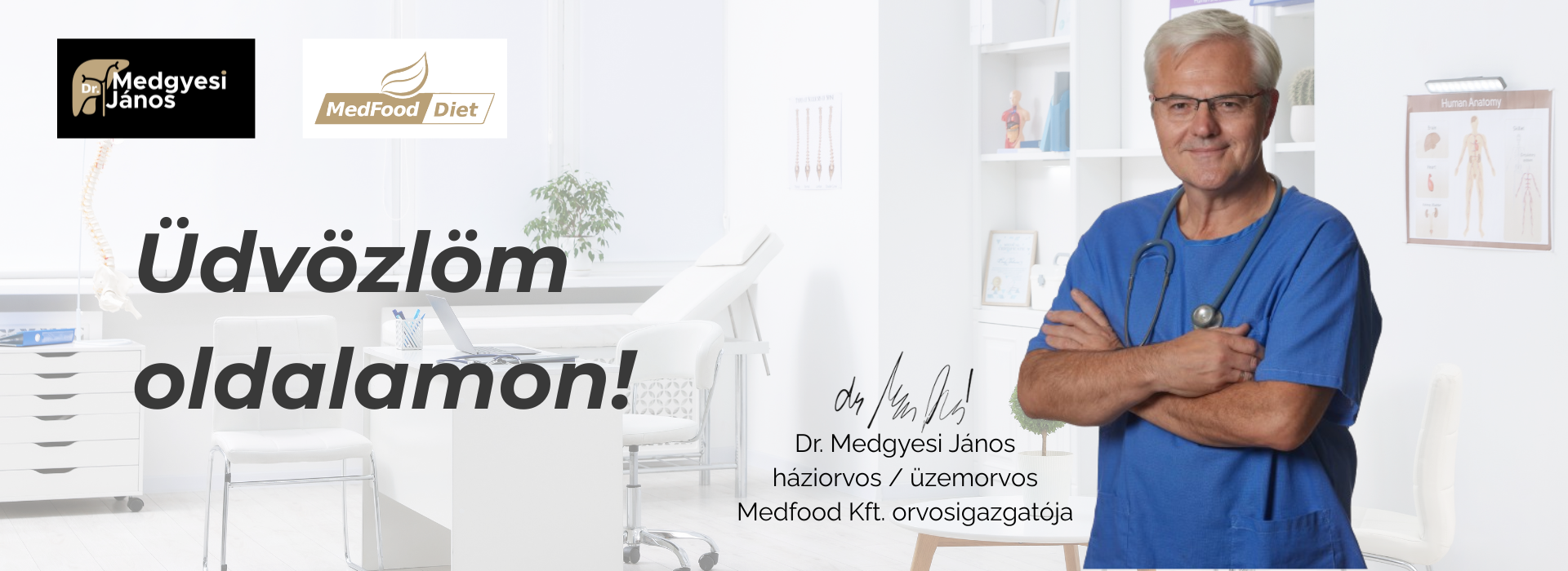Dr. Medgyesi János vagyok, háziorvos, üzemorvos és a MedFood Életmódváltó Program orvosigazgatója. Több mint 20 éve támogatom pácienseimet abban, hogy egészségesebb, tudatosabb életet éljenek. Munkámban a hitelességet, a személyes figyelmet és a hosszú távú eredményeket tartom a legfontosabbnak. Hiszem, hogy az orvos és páciens közötti kapcsolat alapja a bizalom és a közös munka az egészségért. Célom, hogy minden hozzám forduló ember megtapasztalja a pozitív, támogató orvosi hozzáállás erejét.